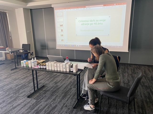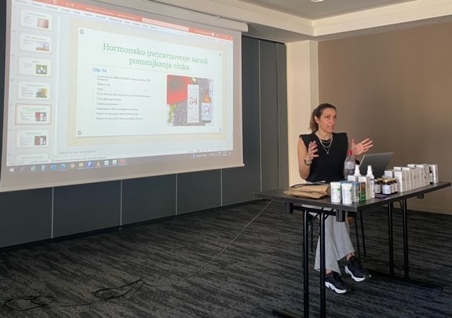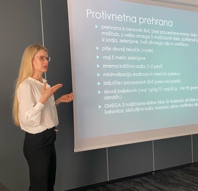 Dr. Ana Debevc Prašnikar med predavanjem o osnovah nege kože